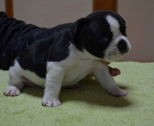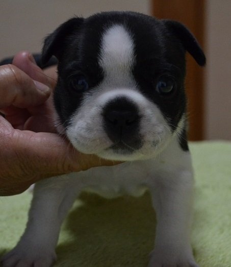 | コメント | 子犬の父親はJKCチャンピオン・母親はJKCチャンピオン直子です。 子犬は頭は大きくショートボディでバランスの良い体型です。 お目目がまん丸でとても可愛い顔です。 パイドもきれいな黒で柄も整っています。 性格も従順で飼いやすい子犬だと思います。 急な見学にも対応いたしますのでぜひ見学にお越しください。 よろしくお願いします。 |