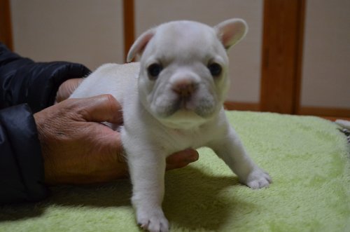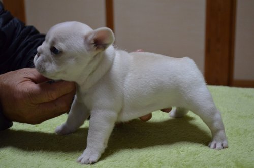 掲載されていた仔犬が可愛らしく見学を希望、西村さんよりすぐご連絡頂きました。見学に行った時には仔犬だけじゃぁ無く親犬や他の仔犬など沢山のフレンチにふれ合い、とても気さくな西村さんとお話ししていて幸せなひと時でした。帰りは近くの高速の入り口まで案内して頂きました。我が家に迎え入れて数日経ちますが元気で愛くるしくってたまらないです。(大阪府 女性)