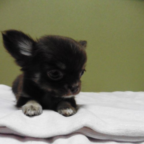 | コメント | 2月2日14時13分に128gで誕生しました 食欲も旺盛で今日まで大変元気に育っています。 3/4 400gになりました。 3/12 456gになりました。 3/17 478gになりました。 3/27 510gになりました。 4/5 538gになりました。 4/14 568gになりました。 4/23 622gになりました。 毎日楽しく遊んで過ごしています。 性格は凄く陽気で好奇心旺盛でとにかく楽しい子です。 犬種図鑑には仲間や家族にはとても愛情深く見知らぬ人に対しては 内気家族の長になるのを好むが一度順応すると他の者を大目にる。 好奇心旺盛だが気まぐれで神経質になりがちな面が有ります。 機敏で清潔好きな犬である と記されています 飼い方にもよりますし すべての子にあてはまるとも思えませんが 間違ってはいないと思い ます。 同じく犬種図鑑には泉門の有る子もいます 眼と眼の間は離れている と記されていてアップルドーム頭蓋の多くの子はモレラが有ります。 この子も泉門が有ります 父はアメリカチャンピオンの子供で色はブラック&タンです。 母はフォーン色で身体は少し大きいですが優しい子です。 撮影では緊張していますが、愛嬌が有ってすごく可愛くて良い子ですよ。 小振りでいいタイプだと思います。 3/27 5種混合ワクチンを接種いたしました。 *直接見に来られて購入される事を希望しますが、遠方の方 又事情で来られない方へ写真、動画等を送らせて頂きます。 詳細な情報を正直にお伝えしたいと思いますのでお気軽に ご連絡下さい。 *2013年9月1日から法律が対面販売となりますので一度でも 見学のお越しをお願いいたします。 *遠方の方でも交通費をご負担いただきましたら、スタッフがお 近くまでお届けに伺います。ご相談下さい。 |