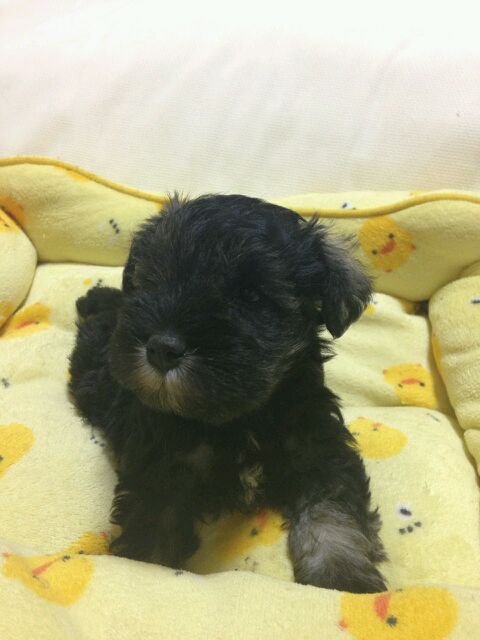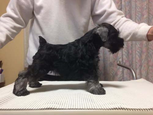 以前 2匹のわんこと暮らしていましたが立て続けに亡くしてしまい立ち直れずにいたのですが、もう一度わんことの生活を望み次に一緒に暮らす子もミニシュナと考えだした時に福井さんの仔犬に目が留まりました。 急な見学希望にも気持ちよく応じていただきました。お会いするまでに福井さんのミニチュアシュナウザー達を見ていて、かっこいいなぁと思っていました。仔犬が気に入ったのはもちろんですが決め手は福井さんとの会話で感じた人柄です。 本当に犬が好き、ミニシュナが大好きなんだなと感じました。 約20後の受渡日には 随分成長した仔犬をみて感激しました。 我が家に着いてすぐにトイレでおしっこをするとその後はうんちもも失敗せずにできています。急な環境の変化なのに鳴き続けることもなくゲージ内で機嫌よく遊んでいます。 可愛くて元気いっぱいの仔犬を譲って頂いた福井さんに感謝しています。(兵庫県 女性)