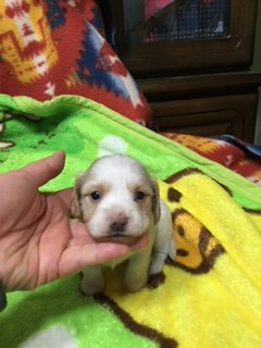 | コメント | 珍しいクリームパイボールドの可愛い赤ちゃん生まれました。 テッキング(点々)が、出にくいタイプになります。 小さな母犬から生まれた小ぶりな子です。 クリームの色は、だんだん濃くなってきます。 是非見学にいらしてご覧になってください。 とても飼いやすい子です。 6種ワクチン接種後、健康診断後のお渡しになります。 ワクチン代、お届けにかかる費用は、別途お願いします。 お気軽にお問い合わせください。 |