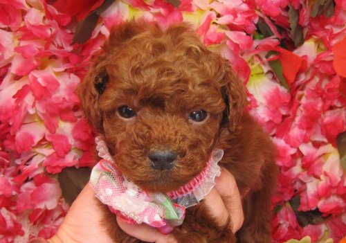 | 毛色 | レッド、てぃータイニー1.5キロから2キロ。巻き巻きの女の子です。 |