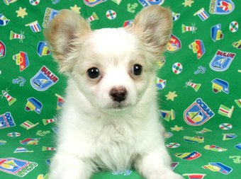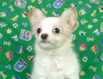 | コメント | 父 チワワ アメリカチャンピオン直子 母 パピヨン JKCチャンピオン直子 成長時の予想体重は1.8~2キロ 現在好ましくないかみ合わせ、ヘルニアはありません。欠点が出てきた際は改めてお知らせいたします。 こちらはパピヨン一筋46年の日本で一番歴史のあるパピヨン専門犬舎ですが、チワワの一流ブリーダーと親交があるためご縁でパピヨンとチワワの優良血統同士でミックスを作出しました。 ご見学は大歓迎ですのでどうぞご連絡の上、おいでください。365日年中無休です。 2013年9月1日より「動物の愛護と管理に関する法律」の改正によって、「生体販売時の現物確認・対面販売」が義務規定となりましたので、最低一度は直接犬舎までご来舎いただかなくてはなりません。従いまして今までのようにネットで写真、動画をご覧になっただけではご購入ができなくなりました。これはすべてのブリーダー・ペットショップも例外がありませんので、ご理解、ご協力のほど御願い申し上げます。 手続きに時間がかるため海外への輸出はいたしません。 スタッフの取得資格 (社)JKC 全犬種審査員2名(社)JKC 単犬種パピヨン審査員1名(社)JKC スチュアート1名(社)JKC A級ハンドラー1名 (社)JKC C級ハンドラー1名 (社)日本愛玩動物協会 愛玩動物飼養管理士1級1名 (社)日本愛玩動物協会 愛玩動物飼養管理士2級2名 (学)AIK 認定グルーマーライセンス1名(学)AIK 家庭犬しつけインストラクター1名(社)ICCキャットグルーマーライセンスB級1名 (学)AIK トレーナーライセンス1名 動物の愛護及び管理に関する法律による動物取扱責任者2名 |