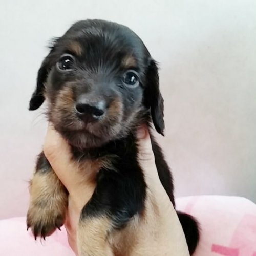 申込から受け取りまでほぼ毎日、仔犬の写真、動画、報告を送って下さいました。縁あって我が家にやって来たのはそれはそれは可愛いい、真にダックスらしく好奇心にあふれ、跳ねまわるほどの元気な仔犬です。大切に育ててくれたに違いありません。このサイトで榎田ブリーダー様に出会って、そして我が家のお姫様に出会えました。ブリーダーズ事務局様、榎田ブリーダー様にも実に細やかな配慮を頂き、感謝で一杯です。有難う御座いました。(北海道 女性)