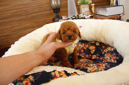 本日、我が家に小さな可愛い女の子のトイプードルがやって来ました。 遠距離という事もあり、暑い時期、飛行機の事なども心配していましだが、家に着いた途端、元気に走り、食欲も旺盛で、今まで大切に育てられてきたのだなぁ、ということがよくわかりました。 連休中にも関わらず、戸田様には、伊丹空港まで連れて来て頂き、こちらの質問にも的確に答えて下さいました。 大変信頼できるブリーダーです。 遠距離で悩まれている方も、安心して新しい家族を迎えられますよ。(兵庫県 男性)
