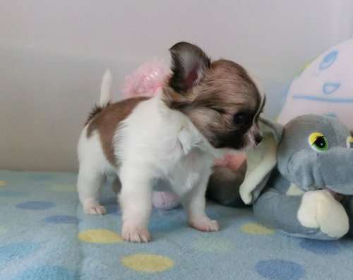 チワワ(ロング) パーティ(レッド&ホワイト) ♂(男の子) 栃木県【 ブリーダーズ 】
