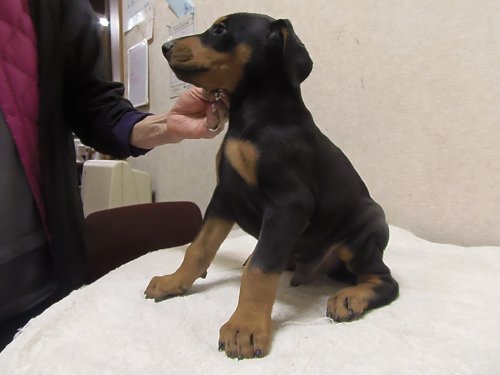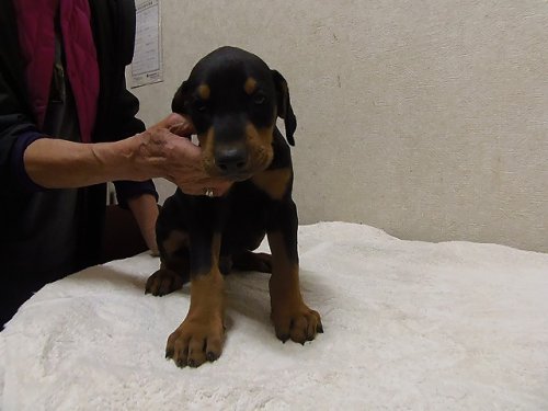 | コメント | 両親ともショータイプですが、ショーチャレンジはしていません。 両親の毛色 ブラック&タン 仔犬(本犬) 性格 明るく愛らしい 物怖じしない人懐こさは抜群! タイプ 骨格もしっかり、骨量多いです。 しっかりした体つき、ショータイプ(育て方に重点を!) とてこ綺麗な犬です。噛み合わせ良好、顎確りしていて、顔は細くない 欠点は見当りません。 しつけ 現在はまだしつけ出来る年齢でないので、自由に遊んでいまが、 ドーベルマンハ賢く、しつけは直ぐに覚えます、また大変綺麗好きな犬 達です。 |