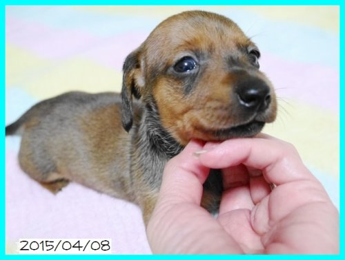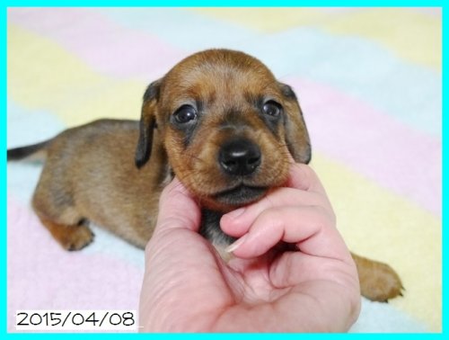 亡くなった愛犬達と同じ、 ワイヤーダックスの子犬を探していましたが、珍しい犬種という事もあり、 なかなか出会えませんでした。 諦めかけた頃、こちらのサイトで可愛い子犬を見つけ、思いきってメールをさせて頂きました。 遠藤ブリーダー様の迅速丁寧な対応で、 お陰様で無事に子犬を迎える事が出来ました。 本当にありがとうございました。 ブリーダーズ様にも感謝致します。 (北海道 女性)