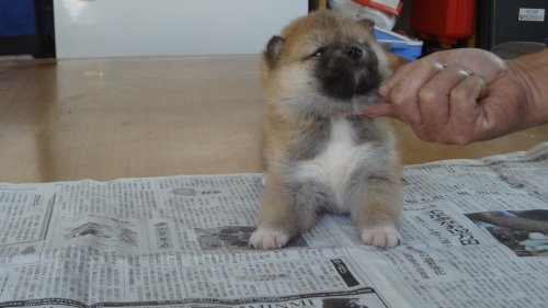 初めて見学で伺った際に、並んで日向ぼっこをしている親犬たちを見て、その時点で高橋さんなら安心だと感じました。事前に希望していたこともあり、母犬と父犬を先に見せていただきましたが、母犬のあまりの人懐こい性格にやられてしまい、実は子犬を見る前に是非譲っていただこうという気持ちになっておりました。 見学の時、譲渡の時といろいろな話をさせてもらい、小さな気付きなども折り込んで教えてもらえるのでやはり柴犬ならこうした専門の方が信頼出来ます。 子犬が我が家に来て二週間が経ち、きょうだいのなかでも一回り小さかったこともあり、やはり成長もやや遅い感じではありますが、母性を刺激された先住犬が頑張って見守ってくれており、予想外ではあるものの家族全員一安心です。 この度は本当にありがとうございました。この子が幸せになれるよう精一杯向き合っていきます。 なお、今後検討されている方への注意事項をひとつだけ書いておきます。問い合わせや見学希望に対しての高橋さんからの返信は電話です。メールでの返信ではありませんので気を付けてください。(宮城県 男性)