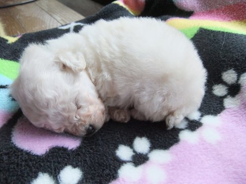 現在、親子4匹のトイプーを飼っていますが、ホワイトのトイプーを新しく家族に迎え入れたく探しておりましたが地元のペットショップでは、なかなかピンとくる子に巡り合えず、ネットを観覧していました所、ブリーダーサイトでピンとくる子を見つけました。ネット購入には不安がありましたが、岩本ブリーダーさんの迅速な対応やブログなどを拝見させて頂き信頼できる方だと思い購入に踏み切りました。住まいが北海道なので一度も会いに行かなままお迎えを楽しみに待っていました。お迎えの日までの間、画像や動画を拝見させて頂いたり、付けた名前で呼んでくれたりドックフードなどもこちらの意向に合わせてくれたりと、とても感謝しております。子犬ちゃんも、健康・賢い・お顔が可愛いとてもいい子です。なかなかこんな子には巡り合えないと家族皆喜んでいます。購入後もトイレの事とか気にかけて頂きメールを下さいました。とても良いご縁が結べたと思っております。(北海道 女性)