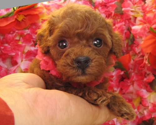 | 毛色 | レッド、お目メ ぱっちり、タイニーサイズの女の子です。 |
