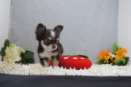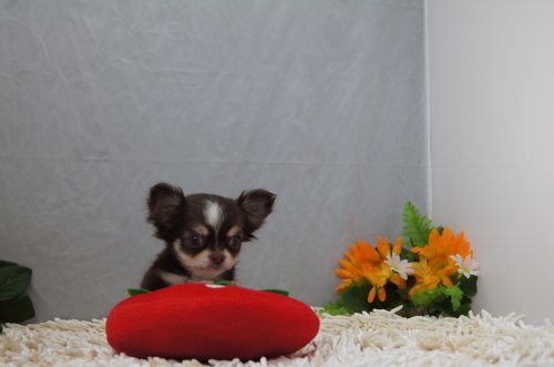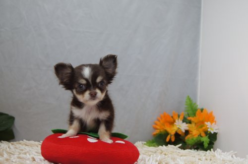チワワ(ロング) チョコレート&ホワイト 両親共に良血統ですよ!極小サイズ!! ♀(女の子) 大阪府【 ブリーダーズ 】