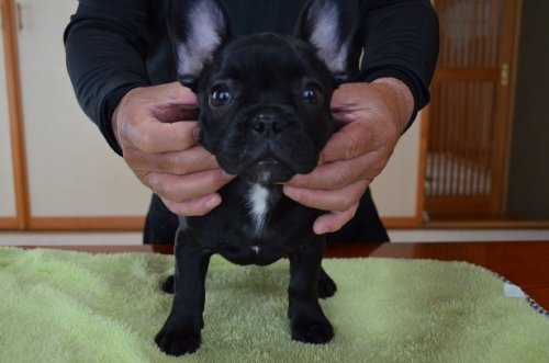 掲載されていた仔犬が可愛らしく見学を希望、西村さんよりすぐご連絡頂きました。見学に行った時には仔犬だけじゃぁ無く親犬や他の仔犬など沢山のフレンチにふれ合い、とても気さくな西村さんとお話ししていて幸せなひと時でした。帰りは近くの高速の入り口まで案内して頂きました。我が家に迎え入れて数日経ちますが元気で愛くるしくってたまらないです。(大阪府 女性)