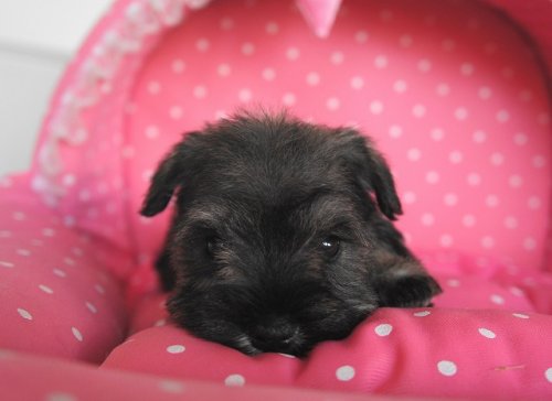 見学の申し込みからの対応も凄く良くて、当日の応対も非常に親切に的確に対応して貰えました。その場で直ぐにこの真摯な対応ができる人が繁殖させたワンコなら心配ないと思ったので内金を払い2週間後の昨日ワンコを引き取ることに致しました。ワンコを連れて新幹線に乗るのは初めてだったのでどんなもキャリーケースを用意して良いのか判らなかったので、準備をお願いしておいたところちゃんとした物を用意しておいてくれました。書類の説明や今後の飼い方その他に付いても質問にも丁寧に受け答えをしてくれて有難かったです。引渡し前にちゃんとシャンプーもされていたらしく良い匂いでした。この子でシュナウザーは4頭目ですが、今までにはこれほど手厚い対応をして貰ったのは初めてです。有り難うございました。(東京都 男性)