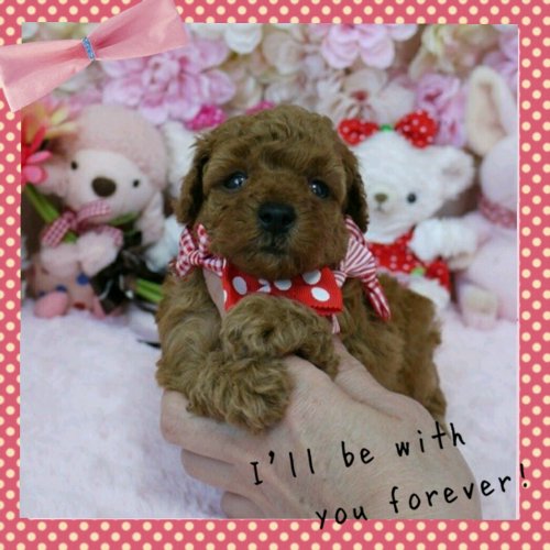この度は有難うございました!!当家にはトイプードルの女の子が1人居て、お留守番が多いため1人じゃかわいそうなので近くで探していたのですが、なかなかいなく、サイトで検索・・その結果、娘の一目ぼれで・・・最初はメールでのやり取りでしたが、解らないことも多く、メールに携帯も書いてあったので連絡もしましたが、メールand携帯の対応もしっかりしていただき、本当に親切、丁寧に対応をして頂きました!本日、家族の一員になりましたが可愛いし、大人しく、しつけもちゃんとして頂き感謝です!今後とも宜しくお願いいたします。(福岡県 男性)