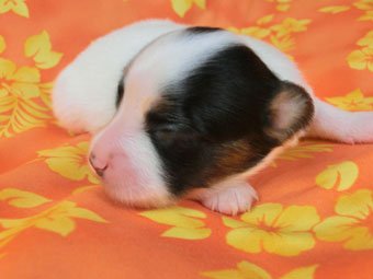 パピヨン トライ(白黒茶の3色) ♀(女の子) 千葉県【 ブリーダーズ 】