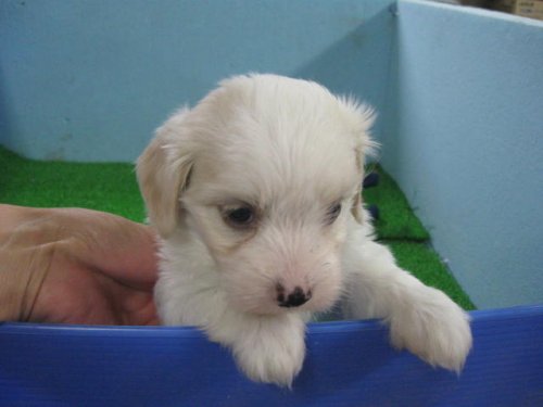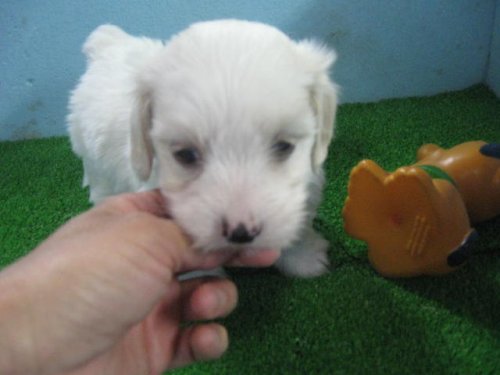 | コメント | 今人気のミックス犬です。 5兄弟それぞれ毛色が微妙に違います。 ママ似のマルチーズ顔しているようです。 スクスク育っています。 実物は可愛いですので是非見学にお越し下さい。 どんな小さなことでもお気軽にお問合せ下さい。 |