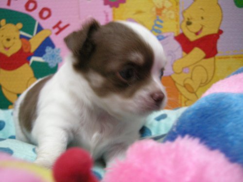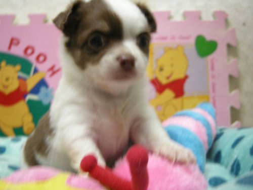 チワワ(ロング) チョコレートタン&ホワイト!可愛いオチビのイケメン君! ♂(男の子) 大阪府【 ブリーダーズ 】