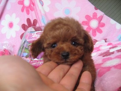 | コメント | 小ぶりな子です お父さん・・・エチエンヌ君 明るい子です レッド お母さん・・・チェリーナちゃん タイニーサイズの優しい子です アプリコット 明るく元気で活発な子です つぶらな瞳が可愛いです お鼻も詰まっていて幼い お顔立ちです 毛ぶきも良くふわふわです 大人になって2.5㎏前後の タイニーサイズの可愛いサイズの 仕上がり予想です |