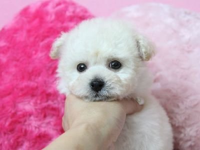 | コメント | 5月17日撮影 涙やけもなく 真っ白なミックスの男の子^^ 毛質はプードルです! 毛量もたっぷりでフワフワです! お顔まんま~~るでとっても可愛いですよ^^ 性格は人なつこい明るいタイプです! 5月17日現在 生後50日で体重630gです。 成犬時予想体重は~2kg前後の小ぶりタイニーサイズ予想です。 父 1.3kg 母1.9kg 1回目のワクチンは接種済みです。 |