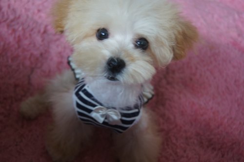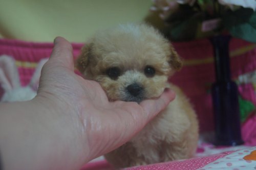 | コメント | 父親アプリコット 母親 パーティーカラー ホワイト&レッド 毛の量は多くてフワフワしています。 色素が濃いのでお鼻 アイライン真っ黒です。 画像のとうり超可愛い子です。 生後50日過ぎで520g ティーカップサイズ予想 7月28日1,1kgです。 |
