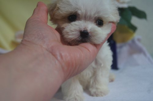 | コメント | 父親 アプリコット 母親パーティーカラ ホワイト&レッド ほとんどホワイトで耳と胴に少しクリームが入っています。 性格はとてもおとなしい子です。 ティーカップサイズ予想 お値段下げました |