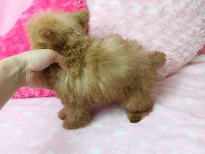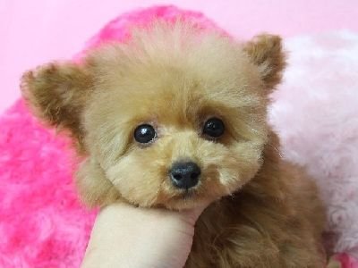| コメント | 6月25日撮影 最新画像更新しました。 アプリコットに近いレッドです。 まんまるなお顔がとっても可愛いですよ♪ 性格は人なつこい明るいタイプです! 6月25日現在 生後89日で体重700gです。 成犬時予想体重は~2kg前後の小ぶりタイニーサイズ予想です。 父 1.7kg 母2.4kg 2回目のワクチンは接種済みです。 お散歩OKですよ! |