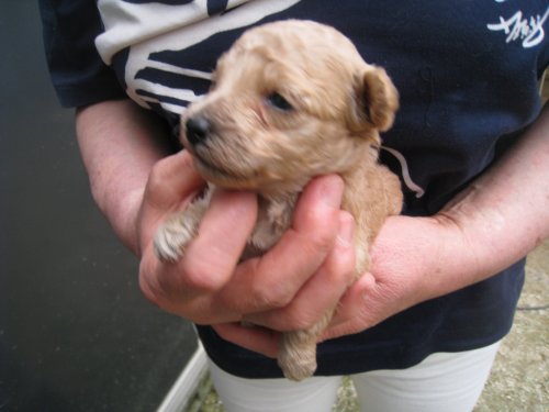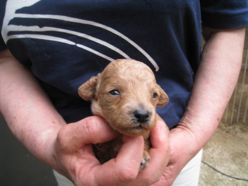 | コメント | とても小柄な赤ちゃんです。 母親のお乳をよく飲んで元気いっぱいです。 父親 ホワイト、母親 アプリコットでとてもきれいな両親です。 お引渡しは7月下旬を予定しています。 ただいまご予約を受け付けております。 |