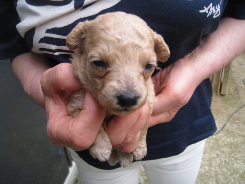 大切に飼っていた子を急に亡くし、トイプードルのアプリコットで前飼っていた子に雰囲気の似た子を探していて、この子に決めました。唯遠方であることを心配しましたが、子犬の躾け方やフードなど丁寧に教えて下さり遠くまで来た甲斐があったね。と家族で話し合いました。お迎えが75日過ぎになったのですが、愛情いっぱい掛けられていたのでしょう。穏やかで笑顔がとても愛らしい可愛い子です。お腹に虫がいるのが見つかり下痢などが続きとても心配しましたが、トイレの躾けも出来ていてトイレシーツが3日ほどで大きいゴミ袋いっぱいになったのですが、夜中でもちゃんとトイレまで行って便をしてくれたのには本当に助かりました。その後食欲も出て元気になりました。大切に育てて行きたいと思います。(岐阜県 女性)