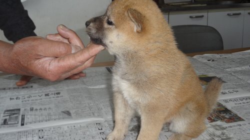 初めて見学で伺った際に、並んで日向ぼっこをしている親犬たちを見て、その時点で高橋さんなら安心だと感じました。事前に希望していたこともあり、母犬と父犬を先に見せていただきましたが、母犬のあまりの人懐こい性格にやられてしまい、実は子犬を見る前に是非譲っていただこうという気持ちになっておりました。 見学の時、譲渡の時といろいろな話をさせてもらい、小さな気付きなども折り込んで教えてもらえるのでやはり柴犬ならこうした専門の方が信頼出来ます。 子犬が我が家に来て二週間が経ち、きょうだいのなかでも一回り小さかったこともあり、やはり成長もやや遅い感じではありますが、母性を刺激された先住犬が頑張って見守ってくれており、予想外ではあるものの家族全員一安心です。 この度は本当にありがとうございました。この子が幸せになれるよう精一杯向き合っていきます。 なお、今後検討されている方への注意事項をひとつだけ書いておきます。問い合わせや見学希望に対しての高橋さんからの返信は電話です。メールでの返信ではありませんので気を付けてください。(宮城県 男性)