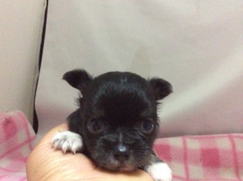 本日一目惚れしたチワックスのMIXの女の子をお譲り頂きました。伊丹空港での引き取りで不安でしたがとても元気で可愛いい女の子でした。岩尾ブリーダーさんはメールや電話でも親切にアドバイスや説明していただいたり、直接見にいけなかったのですが、画像や動画なども沢山送って頂きました。他の方の評価を見て信頼はしていましたが、本当に親切な信頼できるブリーダーさんでした。先住犬との相性も良さそうなので、早く仲良く遊んでほしいです。成長が楽しみです!(大阪府 女性)