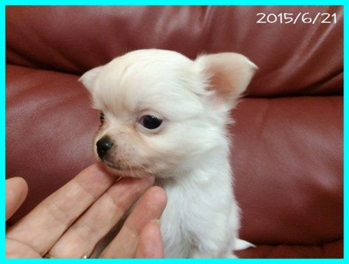 | コメント | とってもちびっこ君ですが、ムチムチに太っていて元気に順調に育っています。 ママはアメリカチャンピオン&カナダチャンピオン&JKCチャンピオン直娘のモンタンちゃん(2キロ) 子犬ちゃんは2頭兄妹で生まれました。 普通サイズのレッド&ホワイトの女の子と極小サイズのホワイトの男の子です。 アップルヘッドでお顔の詰まったとてもかわいい子ですので、ぜひ見学にいらしてください。 お迎えいただけるのはワクチン接種と健康診断実施後サイズが小さい場合は7月下旬頃になるかと思います。 成長の様子などは写真などをお送りできます。 ぜひ良いご縁があってくれたらと思いますので、お問い合わせをお待ちしております。 生後35日目で体重は410グラムです。とっても小さな子ですが、離乳食もぱくぱくと食べてとっても元気でムチムチに太っています。 ぜひ会いに来て下さい。 |