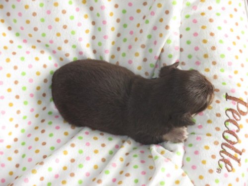 | コメント | チョコ&クリームの女の子です。 父親はJKCチャンピオン直子 元気に成長しています。 |