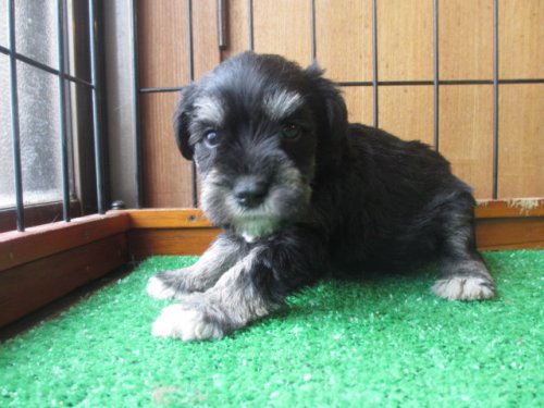 以前からミニチュアシュナウザーを飼っていたのですが8月初めに」16歳で亡くなりもう飼わないつもりでしたが居なくなると寂しく ネットで探すだけと思い見ていたらここのワンちゃんと 出会いブリーダーさんに色々質問してしまい快くお返事を頂きブラック&シルバーの子が前から可愛いと思っていたのですが 迷いました ブリーダーさんにお会いしないといけないのは参りました 私は東京ブリーダーさん福岡 福岡まで迎えに行く電車賃&宿代を出してもたまたま東京で買う金額と変わらなかったので良かったです ブリーダーさんには本当に良くしてもらいました しつこく質問しても必ず返信してくれました この子を大事に育てていきます 色々有り難う御座いました これからも頑張ってください (東京都 男性)