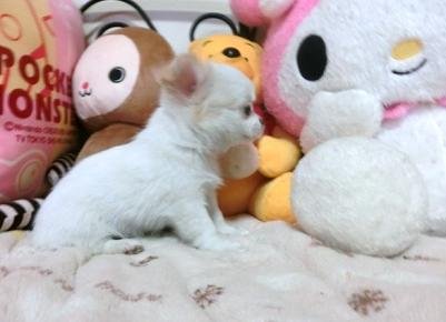 | コメント | 出ましたー!シロ君パパから、可愛いホワイト系の女の子です! 当方のチワワのお問い合わせNo.1なのが、 「シロ君に似た、ホワイトの女の子は居ませんか?」と言う方が、 とても多いのですが、クリーム系や男の子は産まれても、 なかなかホワイトの女の子が少ないのです。 今回の女の子は、両耳と頭に(ほんの少々です)が、 クリームなので、カラーはホワイト&クリームマーキングと 申請させて頂きます。 ママは激カワのブラックタン 2.2キロ ババはホワイトのCH シロ君 2.1キロ パパやママも、どれほど可愛いか是非ご見学にお越し下さい。 購入後のアフターケアは、何時までもご相談させて頂いてますので、 初めて仔犬を飼う方も、ご安心してお任せ下さい。 (当方の評価をご覧下さいませ) 犬舎兼自宅は、東北自動車道「浦和インター」より40分 「館林インター」より、10分ほどで到着します。 最寄駅は「東武伊勢崎線 茂林寺前駅」になります。 どちらの場合も予約のお電話を下さいね。 電車の方は最寄り駅まで送迎致しますので、 ご遠慮なくお申しつけ下さい。 当方では、カードは対応出来ませんのでご了承下さい。 可愛い仔犬をお探しの方は、是非々・ご見学にいらして下さいね。 |