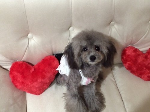 はじめてのワンコなので、優しくて温厚で育てやすい、かわいいお顔の子が希望でした。ペットショップも何件かまわり、当サイトで、辻さんのわんちゃんに出会いました。どの子もとてもかわいいお顔でした。 辻さんは初心者の私の質問攻めにも親切に対応していただき、トイプードルの色によっての性格なども教えていただいて、子犬選びの参考になりました。 実際、迎い入れたラヴィ(シルバー)は、夜泣きもなく、ほとんど鳴かないし、甘噛みもしません。その後も、メールでいろいろお手入れ用品などの事までも相談させていただいています。困った事があれば、辻さんに相談できる事が私の安心につながりました。 本当に辻さんに巡り会えて、よかったです。この子を迎えられて幸せに思っています。ありがとうございました。 (東京都 女性)