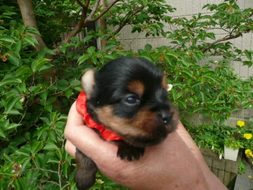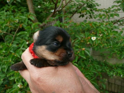 | コメント | 5/26に牡、牝各1頭で生まれました。 お母さん犬は当犬舎の犬で体重2.6kg、お父さん犬は都内某有名犬舎の犬で体重1.5kgです。 6/12(生後18日目)現在の体重が330gです。 普通サイズのヨーキーの女の子です。 前胎子(2014/10/3生まれ)は牡2頭で生まれて、2頭とも小振りでキュートな犬に成長しました。 今回の子もタン色が綺麗です。 早目の見学をお勧めします。 |