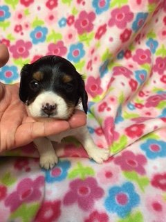 | コメント | 珍しいブラックタンパイボールドの可愛い赤ちゃん生まれました。 兄弟の中で一番小さい子です。 テッキング(点々)が、出にくいタイプになります。 小さな母犬から生まれた、小さな女の子です。 是非見学にいらしてご覧になってください。 写真よりずっとかわいい子です。 小さな可愛いダックスをお探しの方に。 6種ワクチン接種後、健康診断後のお渡しになります。 ワクチン代、お届けにかかる費用は、別途お願いします。 お気軽にお問い合わせください。 |