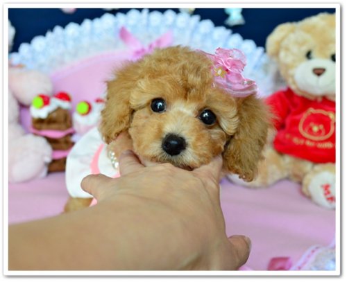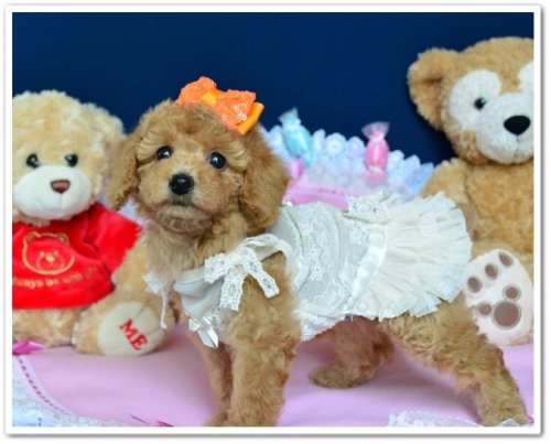 | コメント | ☆☆.。.:*・゜*:.。.グリングリンのまん丸おめめ!美形なアプリのお姫様.。.:*・゜*:.。.☆☆ 大きなまん丸おめめで、マズルが超詰まった女の子♪ 毛量が豊富で巻きが良く、毛質にコシがありますので 将来はどんなカットも似合う子になるでしょう 色素ポイントはすべて真っ黒、毛色は色斑のないきれいなアプリコットです とても性格の良いママ犬に育てられ、この子の性格も超フレンドリー 兄妹の中ではおっとり系、人間大好きで聞き分けのある女の子です ~~成犬時は小さめのタイニーサイズ予想~~ 現在のところ欠点・異常はございません PRAは発症しません 東北道 水沢ICから15分、東北新幹線水沢江刺駅より20分、是非ご見学にいらしてくださいね。 ※遠方の方でも対応可能ですので、お気軽にお問い合わせくださいませ よいご縁がございますように*:.。.☆☆.。.:*・゜*:.。.☆☆ |
