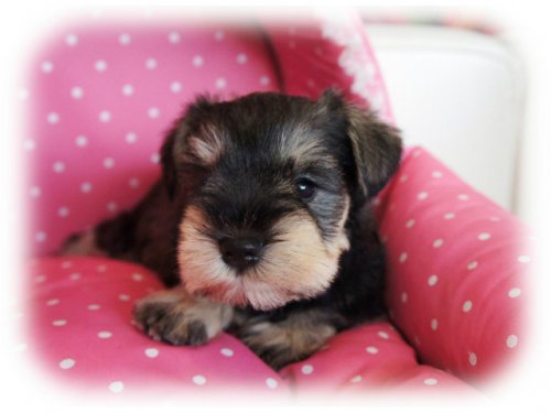 シュナウザーを主力にされているブリーダーさんだと認識しており、ボスちゃんはどうかなあと正直不安でしたがとても可愛く健康的なボスちゃんをいただきました。 掲載されていた写真より実物は想像以上に可愛くて即決し見学させていただいたその日に連れて帰りました。連絡をして、翌日行きますぅって勝手な申し出にも関わらず敏速かつ親切に対応して頂き大満足です。契約に対しても一つ一つ丁寧に説明してくださり、わかりやすかったです。この度は可愛いボスちゃんとのご縁をいただき、本当に有り難うございました。 (大阪府 女性)