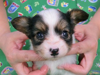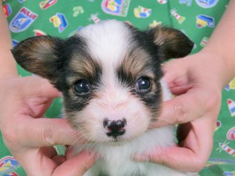 パピヨン トライ(白黒茶の3色) ♂(男の子) 千葉県【 ブリーダーズ 】