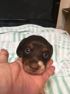 | コメント | 可愛いチョコタンパイボールドの女の子です。 温和な優しい性格です。 是非見学にいらしてご覧になってください。 写真よりずっとかわいい子です。 可愛いダックスをお探しの方に。 6種ワクチン接種後、健康診断後のお渡しになります。 ワクチン代、お届けにかかる費用は、別途お願いします。 お気軽にお問い合わせください。 |