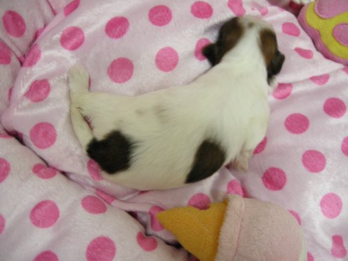 | 毛色 | ホワイト&ブラウンヘルニア出べそ無し❗ミニです! | 出生地 | 大阪府 | |