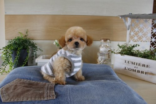 | コメント | ◇トイプードルパパわん - ティーカップ1.4kg •◇トイプードルママわん - タイニーサイズ2.1kg マイクロサイズ~ティーサイズ 毛質、色素、毛量どれをとっても最高のモデルクラスです マズるも短く瞳の大きさは気品さえ漂うこの可愛さ 性格もかわいさも抜群の両親から生まれた男の子です。 ぬいぐるみのような可愛さはきっと皆様を癒してくれるはず・・・ 健康面も一切問題ありません! 人気が集中しそうなのでお早めの見学お待ちしております性格も大人しく、すでにゲージでの留守番、夜泣きもしません。 トイレもしつけ済みの子です。初めての方も飼いやすい子です♡本物のあなたに本物の子を♥さらに可愛くなることをお約束します。 |