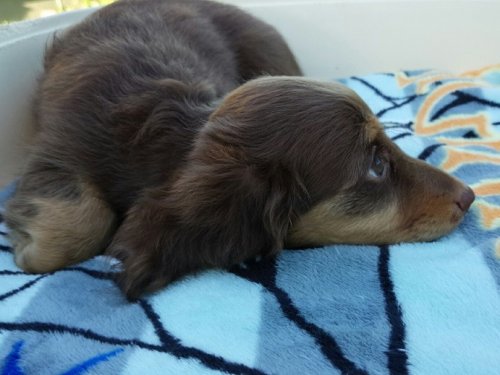 | コメント | 父 カニンヘンダックス チョコタン 母 ミニチュアダックス チョコタン とっても元気でキュートな3姉妹で誕生しました♪ 7/13現在の体重...1.4kg 欠点など特にございません。 7/13 初回ワクチン接種・健康診断済み。 (健康診断書・ワクチン証明書お渡しします。) 離乳食もモリモリと良く食べ 元気に成長しております。 マイペースでおっとりとした性格です。 7/18以降 お迎えいただけます。 平日・土曜・日曜・祭日のご見学大歓迎です。 自宅リビングにてのご対応となりますので、事前にご予約をお願い致します。 |