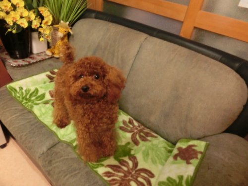 石原様、この度は愛らしいトイプードルの仔犬との素敵なご縁を頂戴しましたこと、心から感謝いたしております。 石原様との幾度のやりとりを重ね、生まれてから私の手元に来てくれるまで、石原様御夫婦の愛情をたっぷり受け、大切に育てていただいた事がよくわかりました。更に先住犬との関係性及び育て方等についてもご助言いただき、大変に助かりました。 また仔犬のお迎えについても、熊本から離れた場所にいる私にとっては悩みの種ではありましたが、その点についてもご配慮いただき、最終的にはスムーズに仔犬を我家に迎えることができ、ゴールデンウィークは賑やかな日々となりました。 これから、先住犬同様、大切には育てて参ります。 この度は素敵なご縁をありがとうございました。(山口県 女性)
