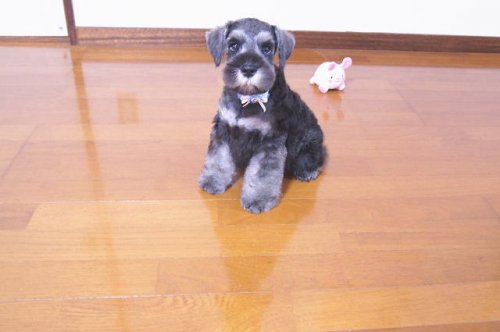 | コメント | 愛らしいお顔の男の子です。 住宅内で清潔な環境で大切に育てております。 とても、人懐っこい性格です。 パパ ソルト&ペッパー チャンピオン ママ ブラック&シルバー チャンピオン直娘 動物病院にてワクチン接種及び健康診断もすみ 今のところ欠点はございません。 お引き渡し後も躾等サポートさせていただきますので、 初めて飼われる方にも安心して御迎えいただけます。 ご見学は大歓迎ですので、お気軽にお問い合わせ下さい。 |