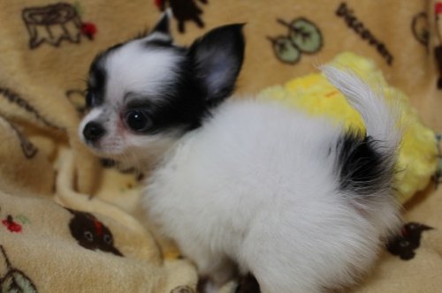 チワワ(ロング) ホワイト&ブラックタン ♂(男の子) 和歌山県【 ブリーダーズ 】