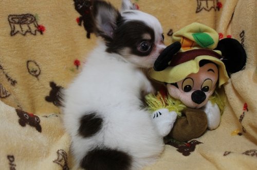 | コメント | パパ(ブラックタン) 1.7キロ ママ(JKC・CH娘ホワイト&チョコタン) 2キロ 個性的な白チョコカラーの男の子です。 右向きと左向きで雰囲気が変わります(*'ω'*) ふやかしフードも頑張ってしっかり食べれるように なりましたのでそろそろ良いご縁があればうれしく思います。 ※ 初回ワクチン代(5種混合) ※ フード1キロ ※ おもちゃ ※ 血統書 ※ わんちゃん母子手帳 上記5点のサービスがあり、表示価格以外の追加費用はございません。 ただしお届け希望等、送料がかかる場合は別途ご負担下さい。 お問い合わせ&ご見学お待ちしております。 |
