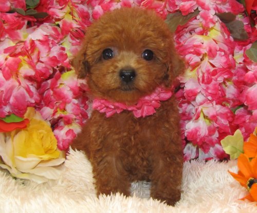 | 毛色 | 濃いレッド、ティーカップ1.5キロ。巻き巻きの女の子です。 | 出生地 | 茨城県 | |